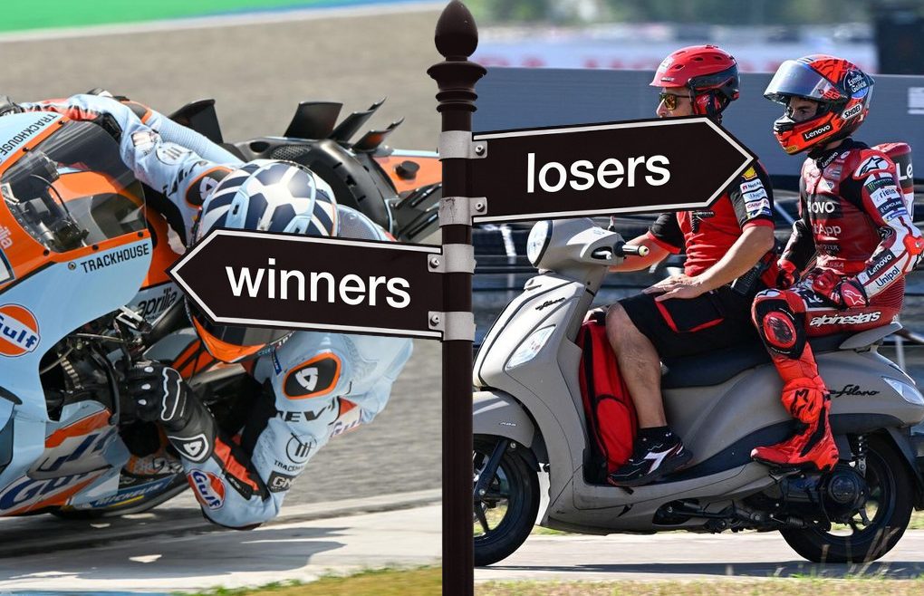 Winners Aprilia: Dare we dream? It’s not that we want Ducati to fail…well maybe it actually is, but more than anything MotoGP fans deserve at least one other manufacturer capable of regularly winning. And we at MGPNews couldn’t wish for a better choice than Aprilia. Why? Because their bike looks like the lovechild of a…